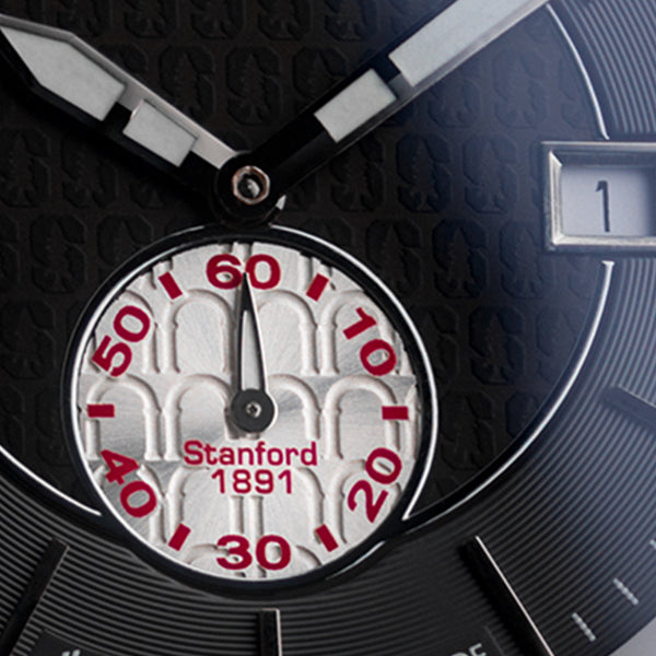 Sub-dial engraved with "Campus Arches", and is decorated with "Stanford", and "1891" founding date